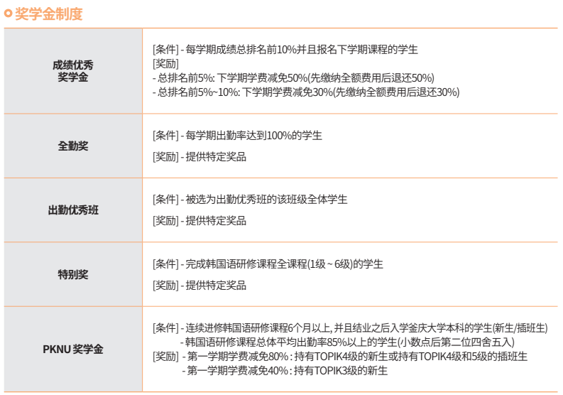 • 豐富的獎學金制度, 以及韓國語研修課程的學生也可入住的校內宿舍