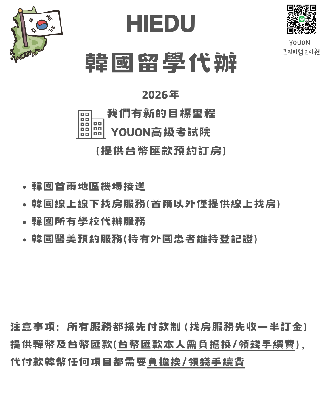 HIEDU韓國留學代辦 所提供的方案,以合理的價錢、完備的服務追求最高品質的體驗,與您一起實踐韓國留學夢想。