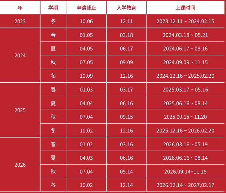 ● 出席率必須達到80%以上, 無故缺席4次以上的情況下, 將不發予結業證書